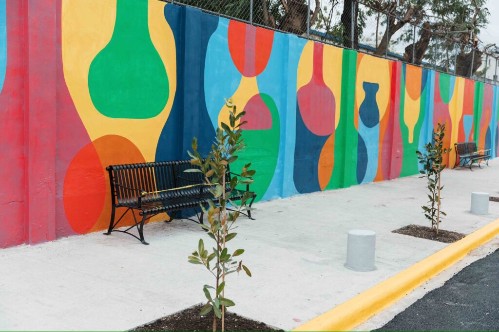 Además, fueron colocadas luminarias y reflectores LED en toda la zona, con lo cual se agrega seguridad y mayor utilidad del espacio en horarios nocturnos. También bancos, zafacones, señalizaciones y la realización de operaciones para el fortalecimiento del drenaje pluvial.